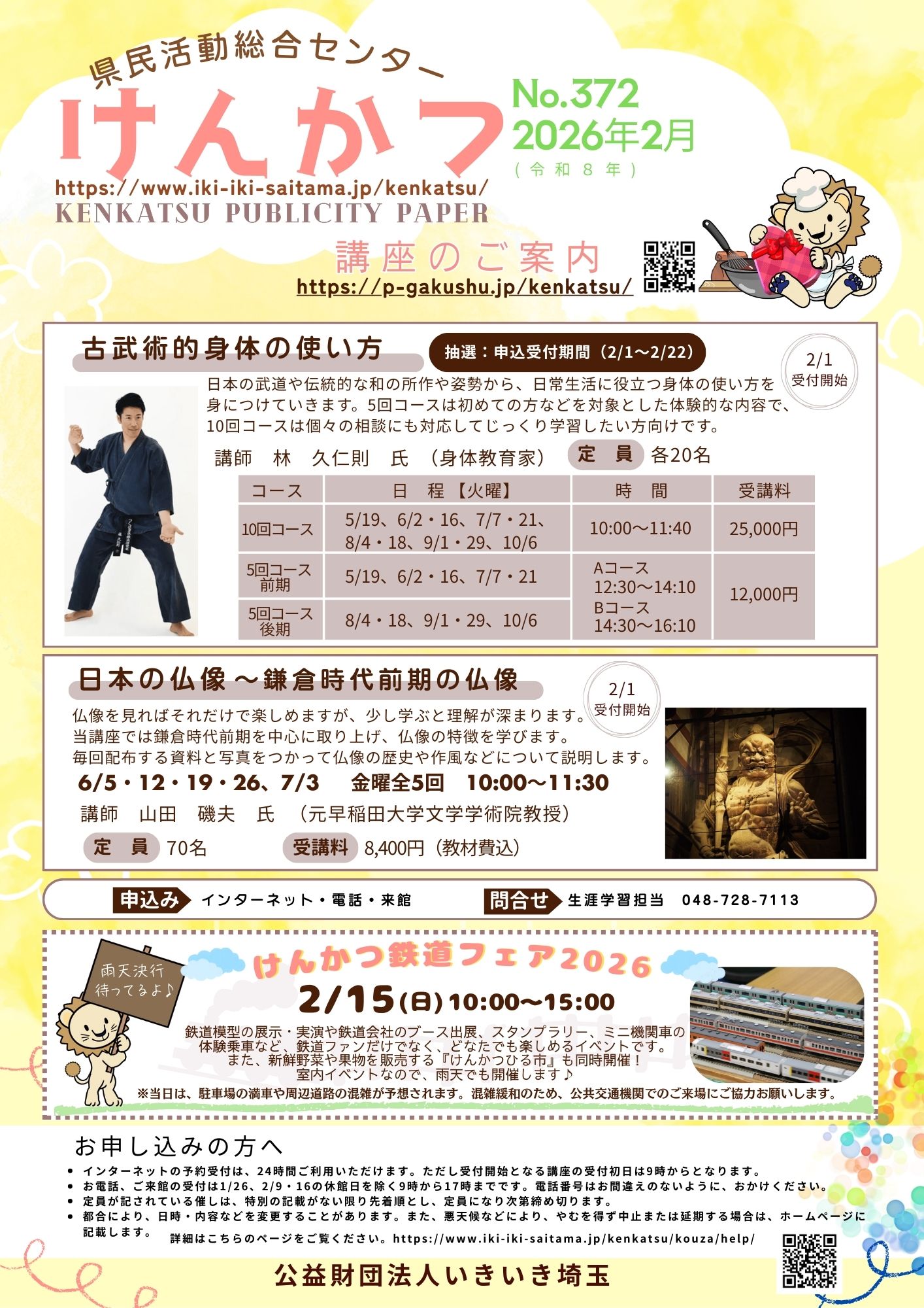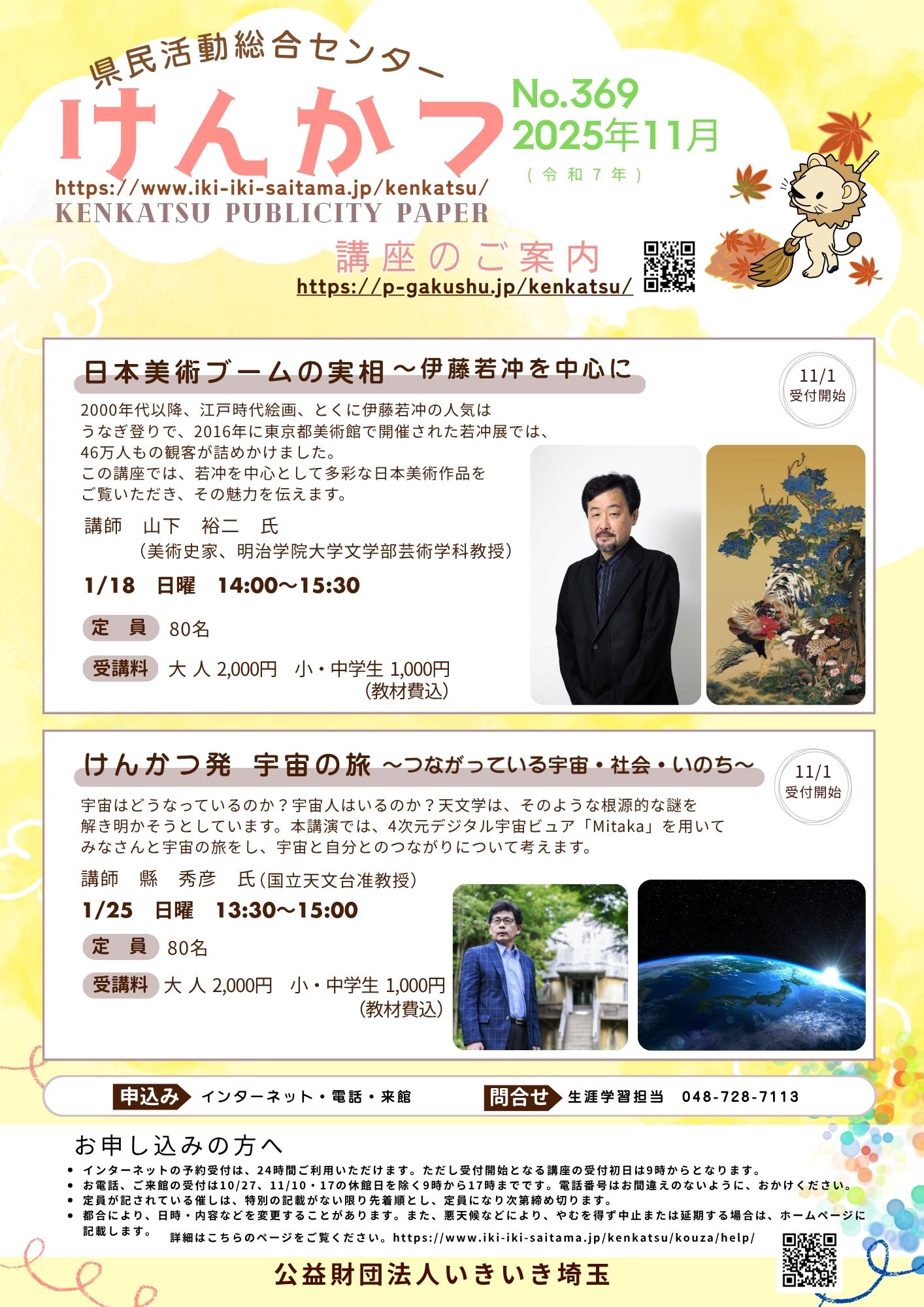 広報紙けんかつは、公益財団法人いきいき埼玉が毎月お届けする、最新ニュースです。