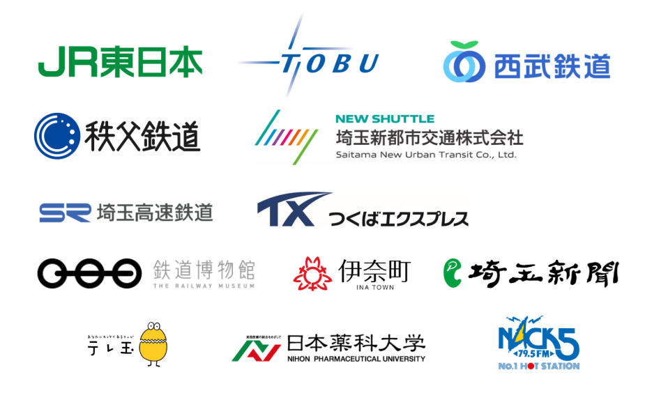 東日本旅客鉄道㈱大宮支社 / 東武鉄道㈱ / 西武鉄道㈱ / 秩父鉄道㈱ / 埼玉新都市交通㈱ 埼玉高速鉄道㈱ / 首都圏新都市鉄道㈱ / 鉄道博物館 / 伊奈町 / 伊奈町教育委員会 / 埼玉県 / 埼玉県教育委員会 / 埼玉新聞社 / テレ玉 / 日本薬科大学 / NHKさいたま放送局 / FM NACK5