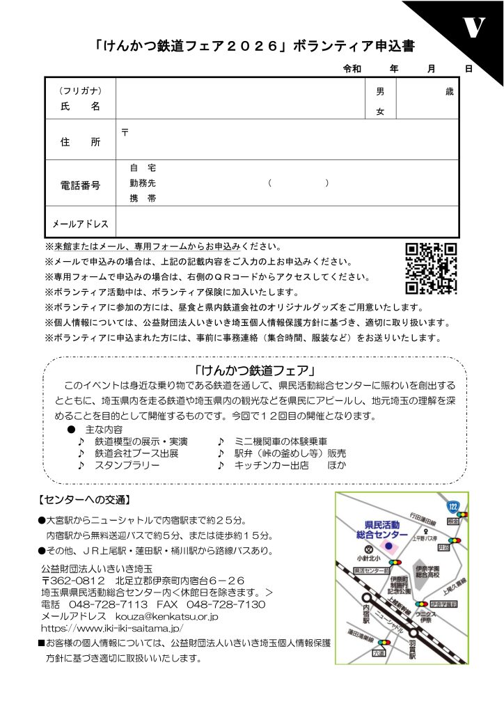 『けんかつ鉄道フェア2026』のスタッフとして運営のお手伝いをしていただけるボランティアを募集します。