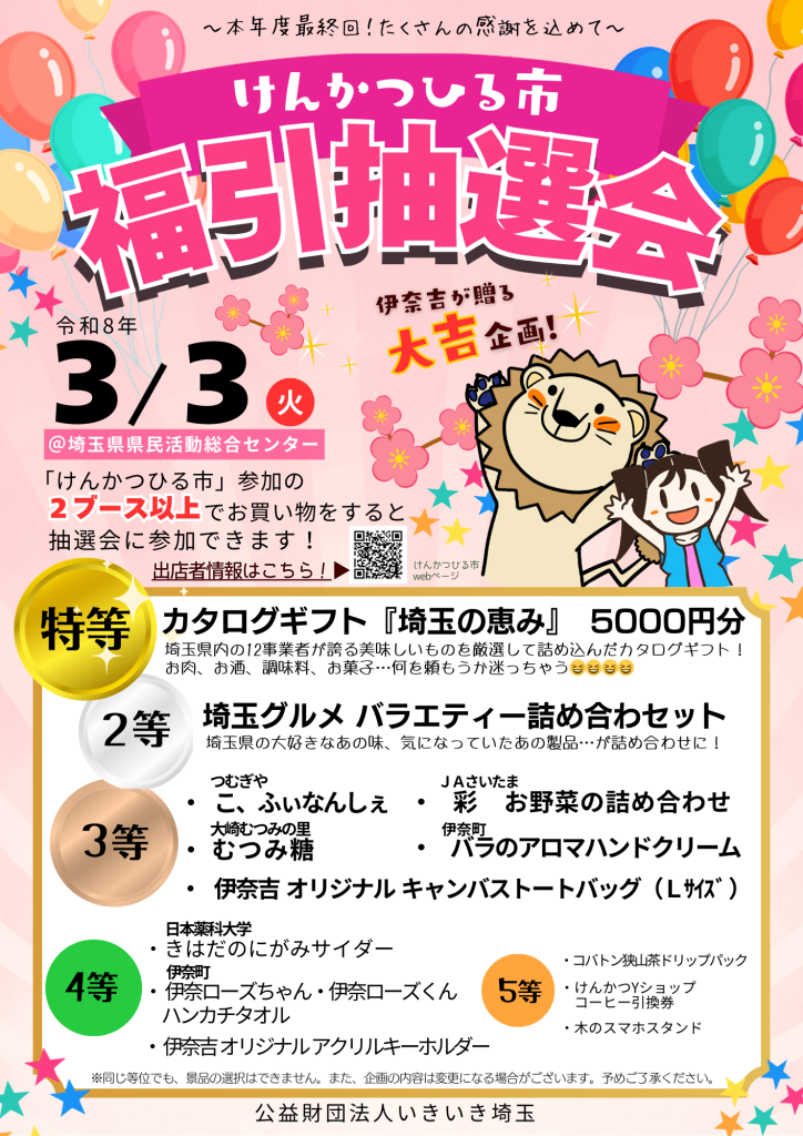 3/3(火)けんかつひる市 福引抽選会を実施します!